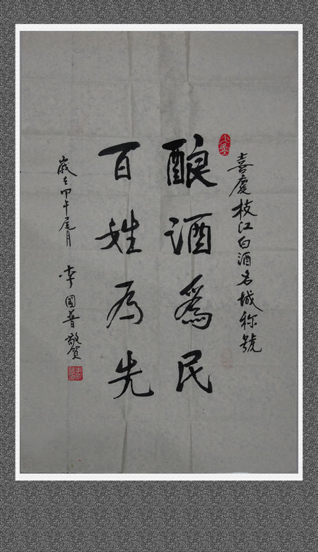3月17日,星空体育宣传部收到曾在星空任职的老县长李国普寄来的书法作品,“酿酒为民,百姓为先”、“紧盯老字号,客人满天下”。苍劲有力的…