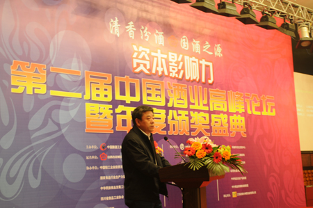 中国酿酒工业协会理事长王延才在颁奖盛典上作重要讲话 3月23日,中国酿酒工业协会、《中国酒业》杂志社在成都城市名人酒店隆重召开“资本…