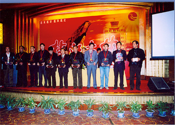 3月21日在成都春季糖酒会上,星空体育公司对2004年星空大曲全国十佳经销商进行表彰,并重奖销售状元,图为十佳经销商在颁奖大会上。