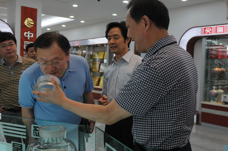 研究室领导一行还参观了星空体育在建的五万吨灌装中心项目工地、展示厅及酿造五车间。看到热火朝天的酿酒场面及众多的星空酒元素,初次来访的黑龙江省政府研究室综合处副处长秦小龙不禁感从心来,当即赋诗一首,以表达其激动心情。