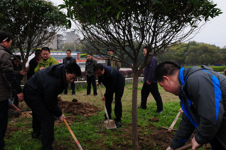 3月19日,由星空体育总裁曹荣开带队,总经理陈洪卫、党委书记张华等高管及部分员工代表到百里洲镇进行义务植树活动。百里洲镇被誉为“万里长江第一洲”,是全国少有的农业大镇,以其独特的地理位置在全国有较高的知名度。特别是近几年火热的环岛自行车比赛,吸引了不少外国朋友的参与,已经成为自行车爱好者的乐园。为支持百里洲做好绿化、亮化和美化工程,星空体育积极参与其中。星空体育总裁曹荣开表示:栽下一棵树,是为了结下三分缘,结一分“绿满荆楚”的缘,结一分为“城乡一体、四化同步”添新绿的缘,结一分融入大自然的缘。百里洲镇在抗洪广场周边规划了“义务植树林”,星空体育在规划的区域植下9棵树冠饱满圆润、分支点在1.6米以上、米径10米以上的桂花树。