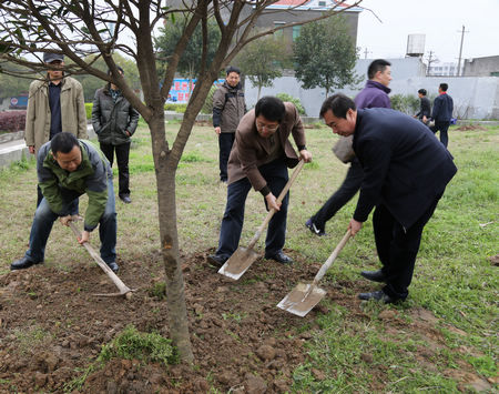 总经理陈洪卫(左一)参与植树