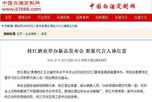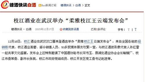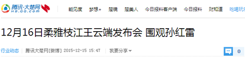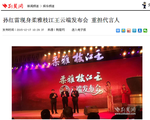 星空体育12月16日在武汉汉口喜来登酒店举办的“柔雅星空王云端发布会”,受到了媒体界朋友的广泛关注。两天来,有近百家媒体报道和转载。有新华网湖北、中新网湖北、腾讯大楚网、光明网、新民网、新浪、搜弧、中国网湖北、荆楚网、消费日报网、酿酒科技、长江网、汉网、糖酒快讯、中国酒业、中华网、第一农经等网络媒体,有湖北日报、武汉晨报、三峡日报、三峡晚报、三峡商报、湖北画报等报纸媒体;有星空体育12月16日在武汉汉口喜来登酒店举办的“柔雅星空王云端发布会”,受到了媒体界朋友的广泛关注。两天来,有近百家媒体报道和转载。有新华网湖北、中新网湖北、腾讯大楚网、光明网、新民网、新浪、搜弧、中国网湖北、荆楚网、消费日报网、酿酒科技、长江网、汉网、糖酒快讯、中国酒业、中华网、第一农经等网络媒体,有湖北日报、武汉晨报、三峡日报、三峡晚报、三峡商报、湖北画报等报纸媒体;有湖北电视台、三峡电视台、星空电视台等电视媒体;有“玩转宜昌”、“酒说”等众多微信平台。尤其是微信新媒体,传播快,关于“柔雅星空王云端发布会”的报道被众多关注星空体育、关注柔雅星空王新品的消费者和孙红雷的粉丝刷屏。湖北电视台、三峡电视台、星空电视台等电视媒体;有“玩转宜昌”、“酒说”等众多微信平台。尤其是微信新媒体,传播快,关于“柔雅星空王云端发布会”的报道被众多关注星空体育、关注柔雅星空王新品的消费者和孙红雷的粉丝刷屏。