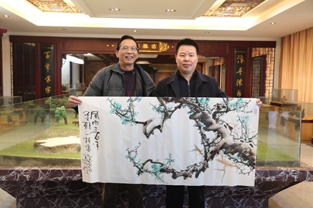 1月28日,国家一级美术师彭宗明到星空体育采风。在星空体育销售总经理侯先圣的陪同下参观了历史文化展厅、酿造五车间、包装三车间,对星空体育的历史文化和独特的酿造技艺表现出浓厚的兴趣。在星空体育展厅,彭宗明现场挥毫泼墨,即兴创作了“风雨两百年,柔雅一枝香”、“百年星空,香满乾坤”两幅画作。