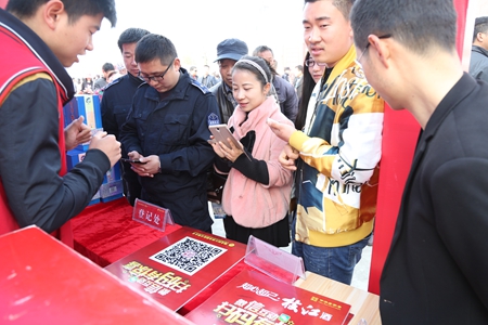 开幕式现场在星空体育展台参加扫二维码赠送星空酒活动的观众