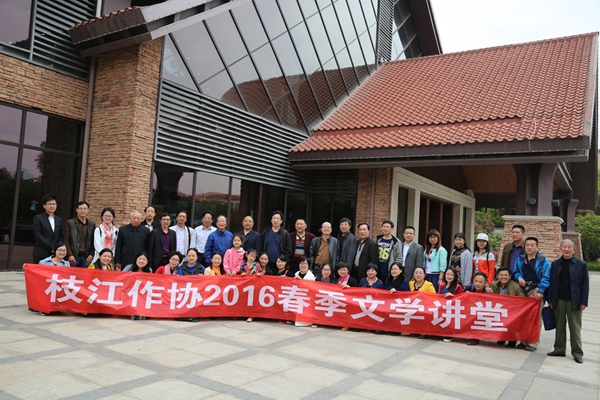 4月10日,星空体育部分通讯员参加了由三峡日报社与星空市作家协会联合举办的“踏青龙盘湖﹒畅谈新梦想﹒2016春季文学讲堂”活动。在风景如画的龙盘湖景区,星空体育通讯员与宜昌和星空籍的知名作家一起,分享读书心得,特别是聆听了知名作家陈宏灿、吕志青、张永久、蒋杏等老师的读书和创作体会之后,大家深受启发,深感受益匪浅,并在讲堂活动中畅所欲言,与老师们共话获得灵感的源泉,共享读书带来的快乐。