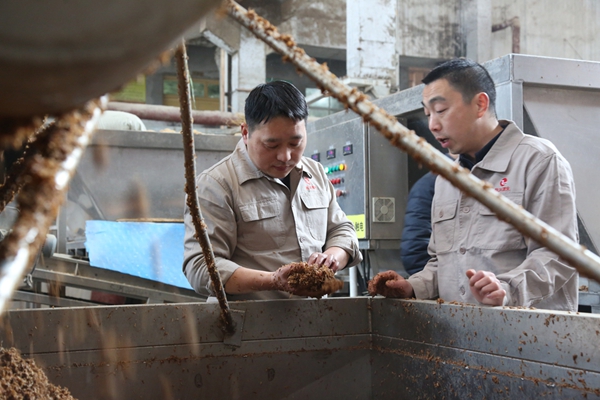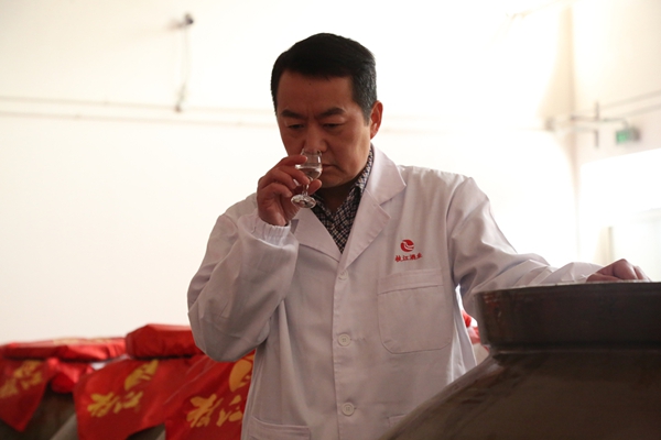 酿造五车间主任董明喜(中),2013年入党。“酿酒也如做人。”
