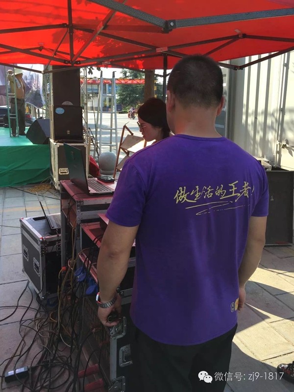 布置完现场的工作人员,背上被汗水湿透,却很开心