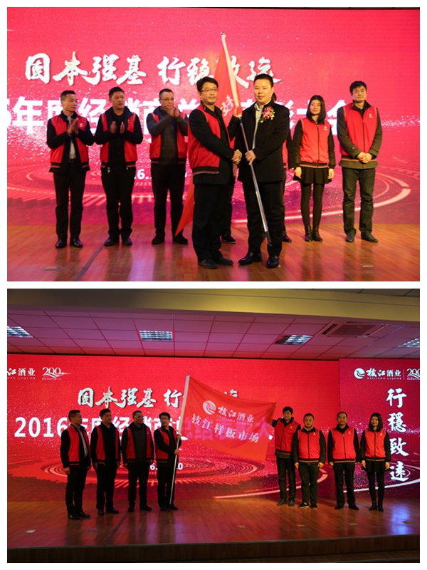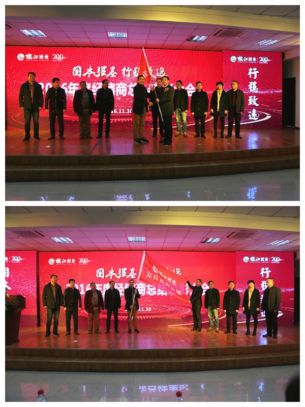 表彰大会上,还对孝感、襄阳、宜昌、天门、星空五个样板市场进行授旗。同时进行了2017年度核心客户合同签约。